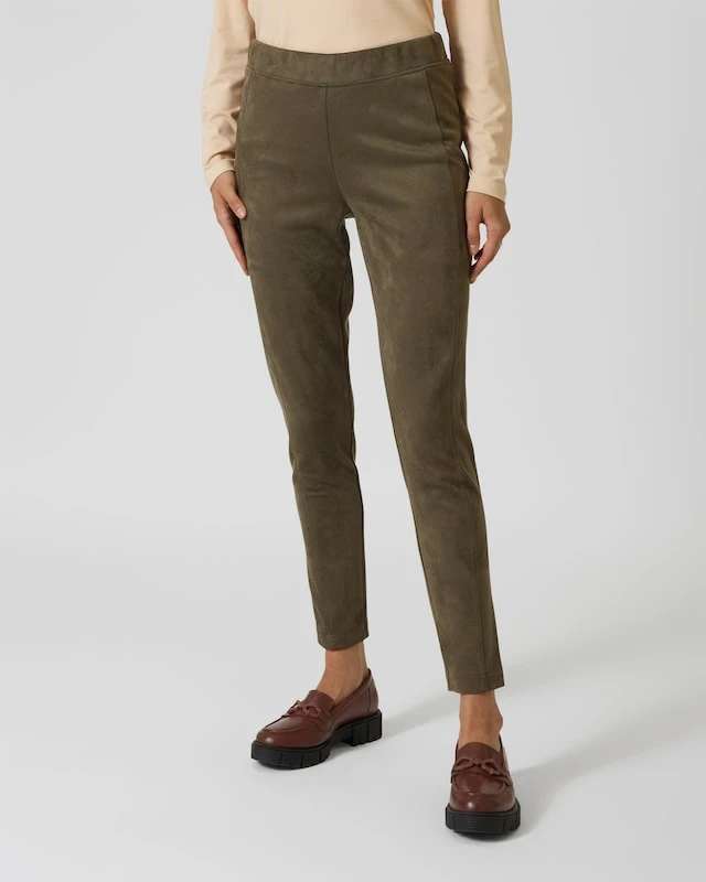 Bereichern Sie mit dem Hosenmodell „Talia“ Ihre Garderobe. Die einfarbige Schlupfhose von THOM by Thomas Rath präsentiert sich im elegant-lässigen Wildleder-Look. Mit dem breiten, elastischen Bund auf Nabelhöhe setzt das Fashion-Piece Ihre Taille schön in Szene. Weiterer figurschmeichelnder Hingucker der Röhre: Ein breiter, farblich passender Streifen an den Seiten. Dadurch wirken Ihre Beine noch schlanker und länger, modisch akzentuiert durch die angesagte Knöchellänge. Kurz: Schicke Mode, die Sie vielseitig kombinieren können, in der Sie sich wohlfühlen und die Sie immer gut aussehen lässt.
